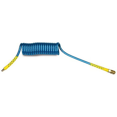 Tubo spiralato in poliuretano, spirale stretta con innesto CEE e rubinetto universale.