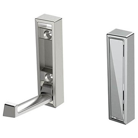 Portabito richiudibile da parete in zama pressofusa. Completo di viti e tasselli. Dimensioni 80x25 mm. Sporgenza da chiuso 15 mm, da aperto 71 mm.