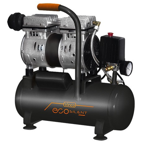 Compressore OIL-LESS supersilenziato 59 dB. 230 V. 0,55 Kw. Aria aspirata 110 lt/min. Pressione max 8 bar. 1440 rpm giri/min. Maniglia comfort. Dimensioni 49x20x47 cm. Capacita' serbatoio 8 lt. Peso 13 kg.