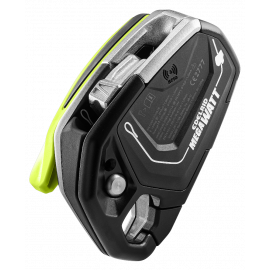 The four-way safety lock allows inserting the rope without having to separate the device from the karabiner. Steel inserts in the especially burdened spots increas life of the device._x000D__x000D_ Weight 495 g.