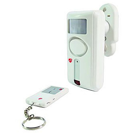 Allarme stand-alone con sensore di movimento ad infrarossi. Attivazione/disattivazione tramite telecomando. Completo di supporto a muro e kit fissaggio. Adatto solo per ambienti interni. Indicatore di batterie in esaurimento. Allarme con 3 batterie alcaline 1,5V AA (non incluse), telecomando 1 batteria 3V CR2032 (inclusa). Indicatore di batterie in esaurimento. Dimensioni 6,4x3,4x11,5 cm