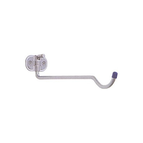 In acciaio zincato tondo pieno diametro mm 9. Con posizione di riposo a 90 gradi e blocco di sicurezza. Sporgenza mm 320