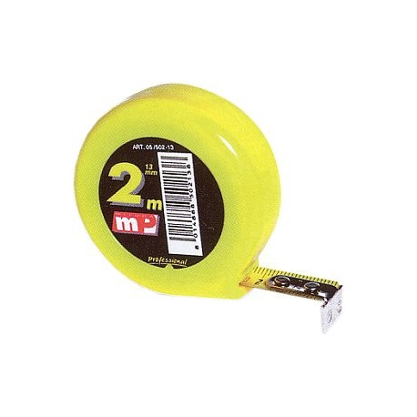 Flessometro con nastro in acciaio verniciato giallo e con rivestimento antiriflesso. Cassa in ABS, avvolgimento ammortizzato del nastro con protezione in gomma. Anello posteriore in metallo per l' aggancio sicuro del flessometro alla cintura. Precisione elevata grazie alla scala realizzata con stampa digitale. Classe di precisione I CE.