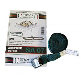 Nastro in poliestere con fibbie autobloccanti. Indicate per fissaggio bagagli e piccoli carichi. Larghezza mm 25.