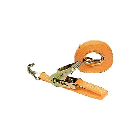 Nastro in poliestere carico di lavoro Kg 2000, con tenditore a cricchetto da mm 50 e ganci. Conf. da 1 pz.