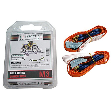 Nastro in poliestere carico di lavoro Kg 2000, con tenditore a cricchetto da mm 50 e ganci. Conf. da 1 pz.