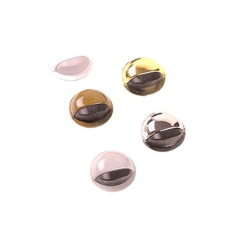 In acciaio con battente in gomma. Dimensioni mm.50x22h.