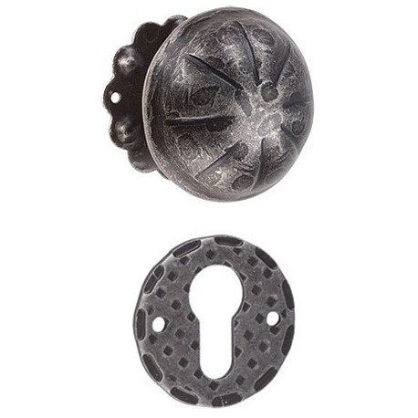 Pomolo fisso maggiorato con rosetta e bocchetta. Color argento. Foro Yale.