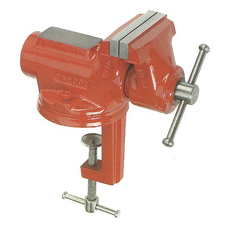 Morsa da banco con galletto di fissaggio. Base girevole. Ganasce in acciaio con larghezza mm 63