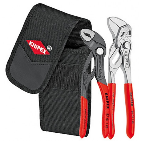 Kit composto da 1 pinza chiave mm.150 + 1 pinza Cobra mm.125. Astuccio in robusta cordura con chiusura velcro.