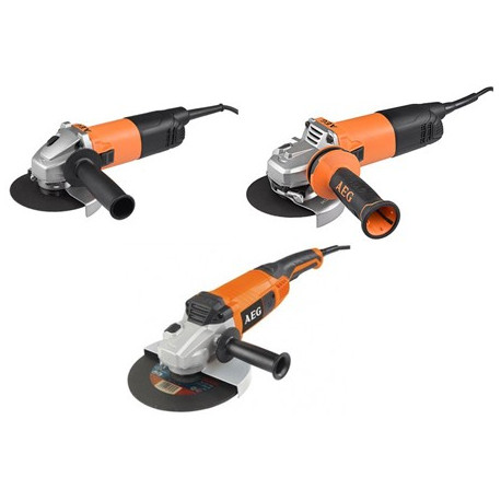 Kit composto da 3 smerigliatrici: 1 WS8-115S (diametro 115 mm, 800 Watt, 12000 giri/min, peso 1,9 kg), 1 WS10-125S (diametro 125 mm, 1000 Watt, 11000 giri/min, peso 2,3 kg), 1 WS22-230 DMS (diametro 230 mm, 2200 Watt, 6600 giri/min, peso 5,2 kg)