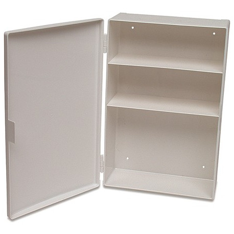 Armadietto in materiale plastico con 3 vani, 2 ripiani interni e chiusura a scatto. Colore bianco. Dimensioni 400x275x127 mm. Peso 1 kg.