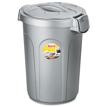 Bidone per rifiuti resistente e facilmente lavabile con coperchio, maniglie ergonomiche e chiusura con clip di aggancio. Capacita' 23 lt. Dimensioni 37x32x46h cm. Colore grigio.