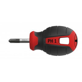 Cacciavite Phillips con lama corta e impugnatura compatta per un facile accesso in spazi ristretti. Sviluppato per uso professionale insieme agli artigiani. L'impugnatura è realizzata in resistente plastica PPC con un rivestimento in gomma resistente all'invecchiamento e di facile presa. L'impugnatura del cacciavite ha un foro per appenderla o fissarla. Il design dell'impugnatura impedisce al cacciavite di rotolare su superfici inclinate.