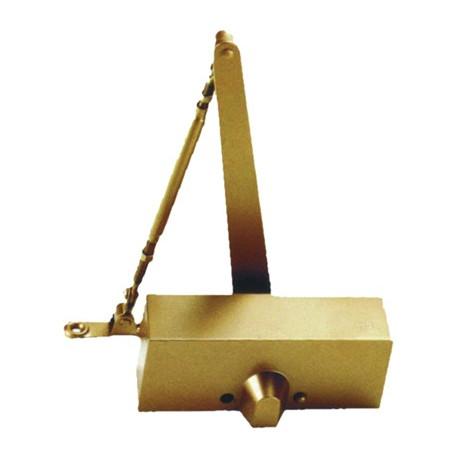 Corpo monoblocco in alluminio, carter in nylon. Braccetto in acciaio con arresto, forza e velocita' di chiusura, potenza del colpo finale e posizione arresto porta regolabili. Larghezza porta max cm 85.