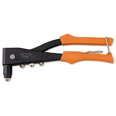 Corpo in alluminio pressofuso, impugnatura in PVC. Per rivetti diametro mm 2,4 - 6,4 di qualsiasi materiale - 7,8 solo alluminio. Peso g 1720. Ricambi: serie 3 morsetti. = 3 morsetti