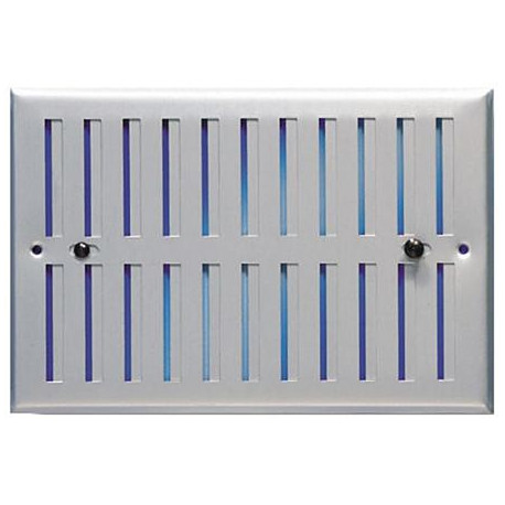 Griglia d'aereazione regolabile utilizzabile anche per la diffusione di aria calda recuperata da stufe e camini a legna o pellets. In alluminio anodizzato argento. Dimensioni 168x190 mm.
