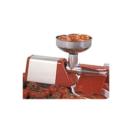 Filtro e tramoggia in acciaio inox. Corpo motore da 225 W. Separazione automatica di bucce e semi. Disponibile accessorio tritacarne.kit guarnizione