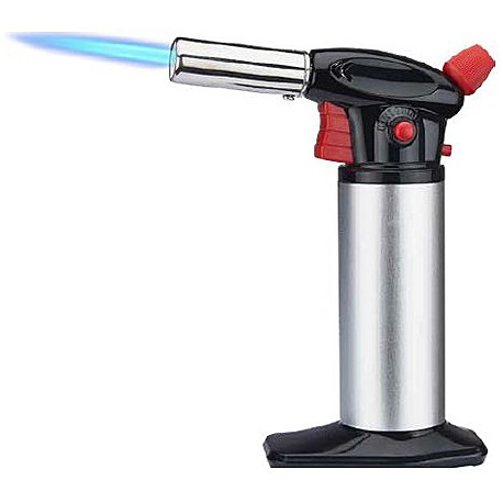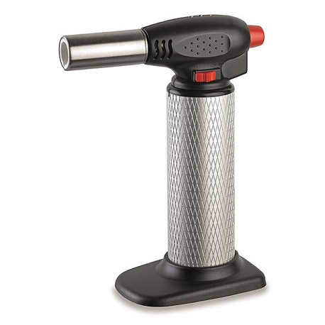 Scottatore a fiamma specifico per cucina. Comoda accensione e regolazione della fiamma. Ricaricabile. Dimensioni 12,5x17 cm.