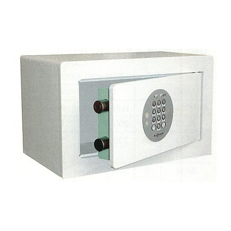 Cassaforte a chiave con frontale monoblocco in acciaio spessore 8 mm, con taglio laser tra cornice e sportello. Catenacci in accaio nichelato da 22 mm. Speciale verniciatura a forno ad alta resistenza contro la corrosione. In dotazione 1 ripiano, 2 chiavi e istruzioni.