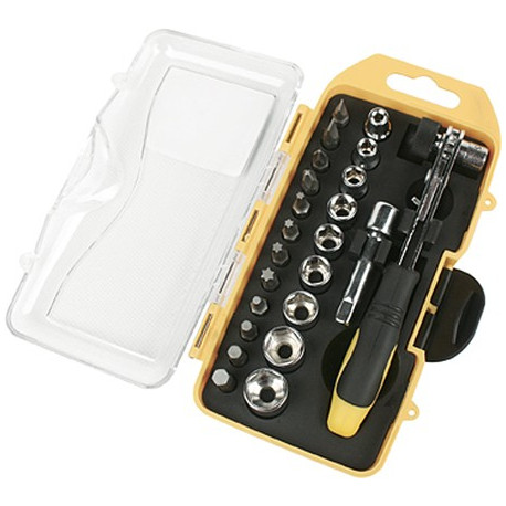 Serie chiavi a bussola 23 pz. con cricchetto attacco 1/4''. 8 bussole. Prolunga da 50 mm, adattatore per inserti e 12 bits.