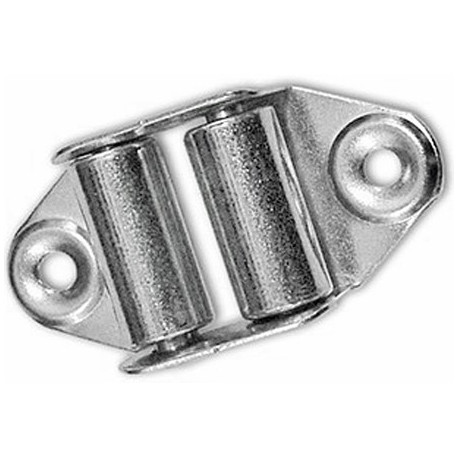 Guidacinghia verticale con 2 rulli in ferro zincato. Lunghezza totale 45 mm.