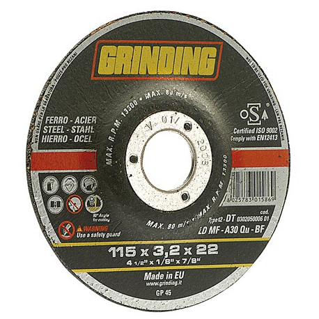 A centro depresso. Impasto all'ossido di alluminio per il taglio di profilati, tubi e materiali ferrosi in genere.