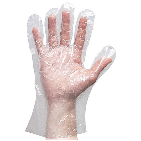 Guanti monouso usa e getta, in HPDE. Idoneo al contatto con gli alimenti. Disponibile in blister da 100 pz oppure scatola da 500 pz.