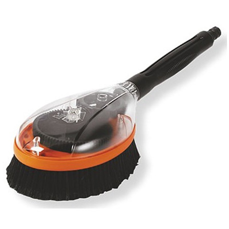 Spazzola rotante con sistema ad ingranaggi che consentono l'utilizzo anche a basse pressioni. Bordo in morbido polipropilene antiurto. Corpo esterno in policarbonato trasparente. Setole in morbido pvc piumato antigraffio. Per bastoncini shampoo.