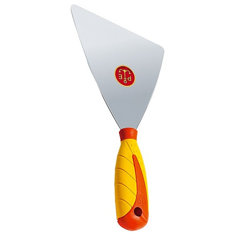 Spatola in acciaio inox per rasatura e lucidatura marmorino con lama obliqua e angoli arrotondati. Manico in materiale antiscivolo e antivibrazione.