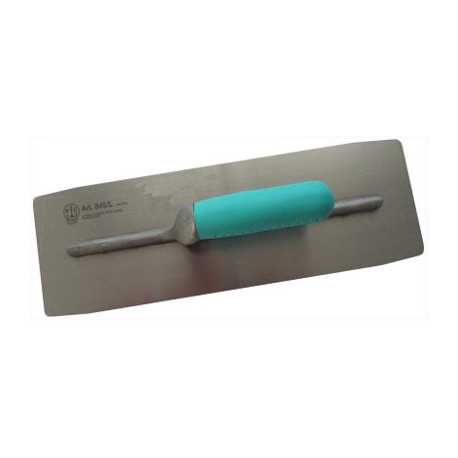 Spatola in acciaio inox con il manico in plastica per rasatura e lucidatura di stucco Veneziano e grassello di calce. Angoli arrotondati, filo lama rettificato e lippato, lama lucidata a specchio.