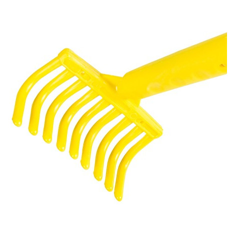 Rastrellino a 9 denti. In polipropilene giallo. Larghezza cm 14