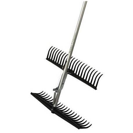 Rastrello raccoglitore con leva di azionamento sul manico. Manico in legno di tiglio, corpo in alluminio, staffa movimento e rastrelli in polipropilene. Larghezza cm 55, lunghezza totale cm 170. Peso kg 1,2 circa. Da montare.