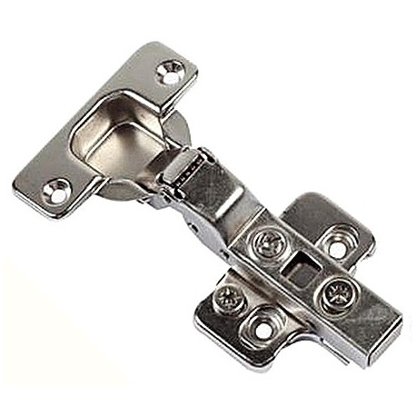 Chiusura ammortizzata. Collo mm 0. Finitura nichelata. Apertura a 94 gradi. Completa di base regolabile a clips. Blister da 2 pz.