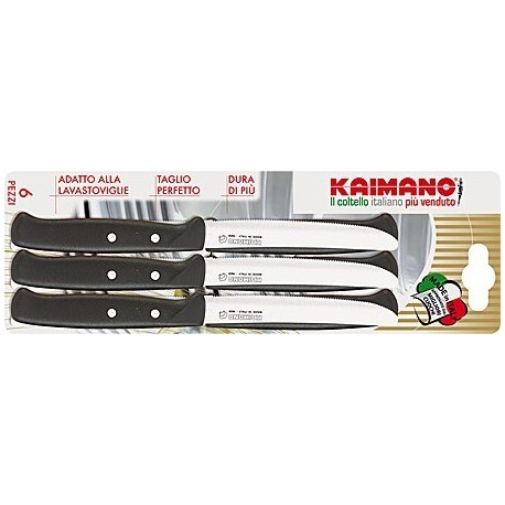 Coltello KAIMANO da tavola serie PREMIUM a punta tonda. Manico nero. Taglio perfetto. Adatto alla lavastoviglie. Blister da 6 pezzi.