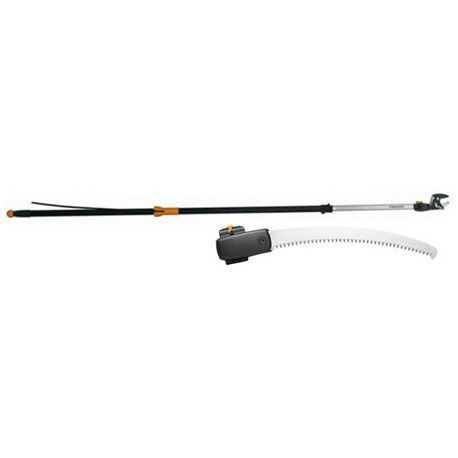Svettatoio telescopico UPX86 con seghetto. Modello PROMO vecchio design con impugnatura soft-grip. Asta telescopica regolabile da 2.4 m a 4 m, per potare fino ad un altezza massima di 6 metri. Angolo di taglio regolabile fino a 230 gradi. Azione bypass delle lame adatta a potare legno fresco fino a 32 mm di diametro. Completo di seghetto con aggancio rapido