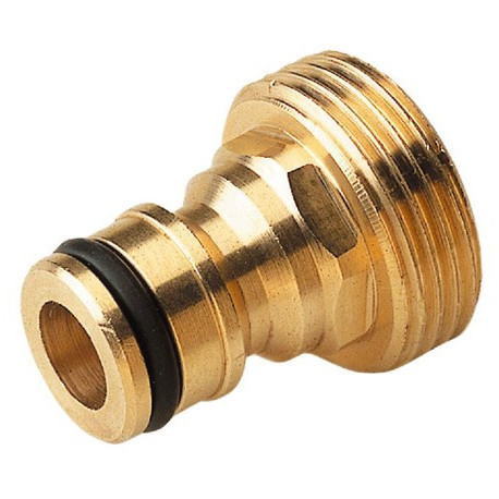 Innesto rapido attacco maschio in ottone lucido. Compatibile con sistemi in plastica. In blister.