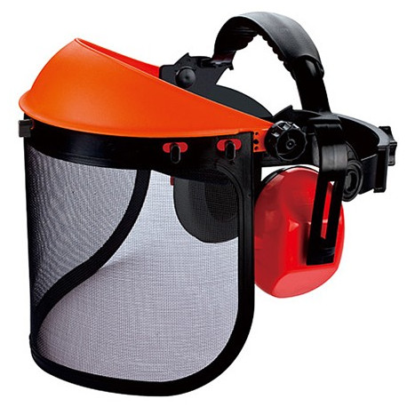 Visiera in plastica con regolazione posteriore centralizzata. Fissaggio cuffie integrato nel fermatesta. Archetto imbottito.