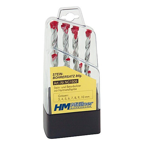 Serie 8 punte in WIDIA in pratico dispenser. Applicazione per pietra, muratura, mattone. Composta da 1 pezzo per i diametri mm 3/4/5/6/7/8/9/10