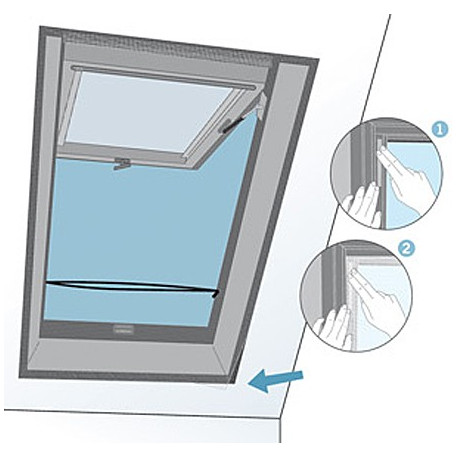 Zanzariera per finestre mansarda di facile applicazione tramite nastro velcro-adesivo. Prevede una zip che rende possibile l'apertura di finestre a tetto con zanzariera montata. Dimensioni 1,5x1,3 mt. Colore nero.
