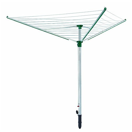Stendibiancheria ad ombrello con meccanismo azionabile con una sola mano per una maggiore praticita' all'apertura e alla chiusura. Poco ingombrante, ideale per la casa e per il campeggio. Dispone di circa 14 metri lineari per stendere. Bracci portanti molto stabili. Fili puliti per un bucato senza segni di sporco. Custodia protettiva inclusa.