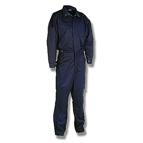 Tuta intera in poliestere e cotone. 65% poliestere 35% cotone da 245 g/m2. Polsino regolabile. Elastico in vita. Dotata di tasca porta metro, passante per martello e tasche per ginocchiere con posizione regolabile. Colore Navy.