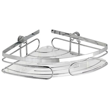 Mensola singola ad angolo in acciaio inox. Vassoio interno in plastica trasparente. Viti e tasselli inclusi. Sistema di fissaggio POWER LOC adattatore per il fissaggio senza viti da acquistare a parte. Dimensioni 26,5x6,5x19 cm.