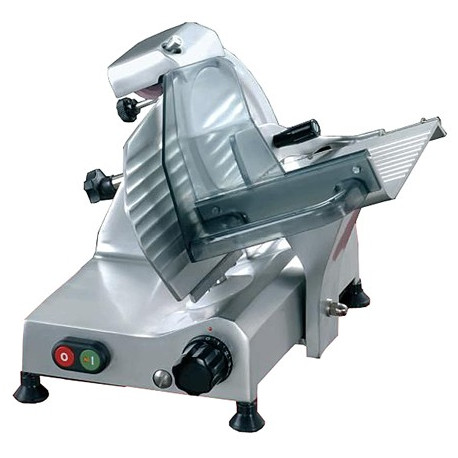Realizzata in lega di alluminio anodizzato. Regolatore di taglio da 0 a 15 mm. Carrello montato su cuscinetti a sfera. Diametro lama 195 mm. Giri lama r.p.m. 300. Monofase 220V - HP 0,20. Peso Kg.10 - Dim. max 520x360x315mm