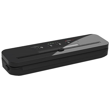 Macchina per sottovuoto in ABS ultracompatta. Pratico oblo' per il corretto posizionamento del sacchetto, taglia-sacchetti bidirezionale integrato. Attacco per tubo contenitori. Cavo rimovibile. Saldatura automatica. Display di avanzamento a 5 led. 1100 Watt. Protezione termica autoripristinante. Colore nero. Dimensioni cm 38x10x6. Peso Kg 0,94