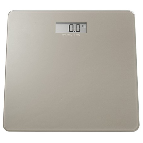 Bilancia digitale in vetro temperato mm 5. Portata massima 150 kg. Suddivisione 100 g. Dimensioni 30x30x1,7h cm. Color tortora.