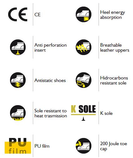 Descrizione: Calzatura bassa in tessuto rete e vitello scamosciato, puntale in alluminio 10, 200 joule. Fodera Air Mesh, K-Sole passaggio zero, plantare in EVA forata.