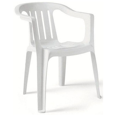 Poltrona da esterno in resina bianca. Dimensioni 58,5x60x76 cm.