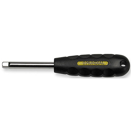 Impugnatura porta bussole con attacco da 1/4". In acciaio al cromo vanadio, finitura cromata. Impugnatura in plastica da 60 mm.