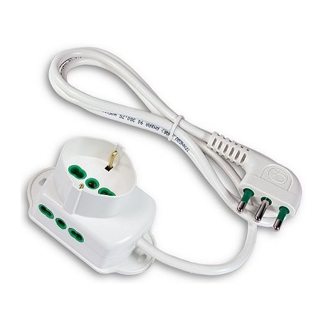 Lunghezza cavo mt.1,5. Sezione cavo 3x1 mm2. 1 presa 2P+T 16A bipasso/Schuko + 2 prese 2P+T 16A bipasso. Spina 2P+T 16A.